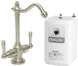 This attractive "Quick 'N Hot" Victorian Style Hot and Cold Water Dispenser/Heater is THE perfect finishing touch for your designer kitchen or bar! Its premium finish and traditional design are sure to update any kitchen! Comes with an insulated, solderless stainless steel hot water tank with easy access self-resetting thermostat which adjusts from 140° to 200°F and yields 60 cups of 190°F hot water per hour (780 watts, 6.5 amps, 115V and 60 Hz). Complete unit, ready to install and use! You'll be able to appreciate both the beauty and performance of this item for years to come thanks to superior quality finishing and solid construction. Does not include water filter or water chiller. Read more
